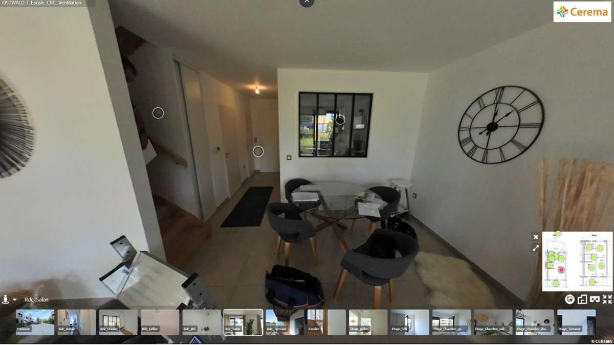 Le Cerema a retenu une solution de diffusion qui permet de créer, d’organiser, de commenter et d’exploiter une bibliothèque de visites virtuelles. Cette solution permet ainsi de proposer aux formateurs et aux stagiaires des configurations de bâtiments, de logements et d’équipements (matériels et matériaux) adaptées aux sujets abordés pendant les formations. L’intégration possible de fonds de plan, d’éléments audios et vidéos, de photos apporte un peu plus de réalisme dans ces visites pourtant bien virtuelles.