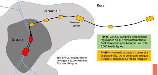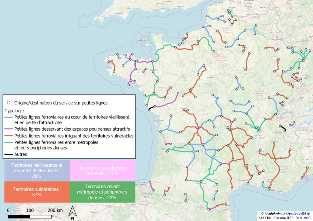 Pour travailler les enjeux associés aux petites lignes ferroviaires, un regard spécifique aux territoires environnant les petites lignes ferroviaires a été mené par le laboratoire MATRiS (Cerema) et a démontré qu’il existe également une diversité des petites lignes au regard de leur inscription territoriale :