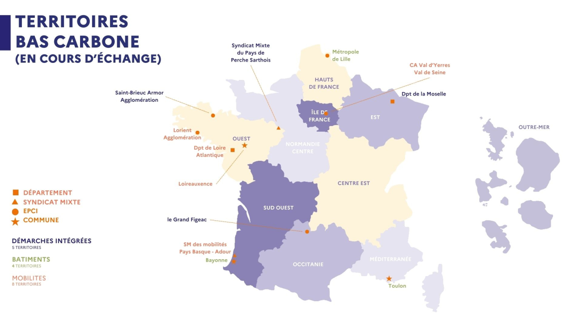 Le Cerema a lancé en 2024 auprès de ses collectivités adhérentes le programme "Territoires bas carbone" pour accompagner les collectivités, soit dans leurs projets de démarche intégrée (élaboration ou évaluation d’un plan énergie-climat territorial…), soit sur l’une des deux thématiques suivantes : Mobilité ou Bâtiments bas carbone.