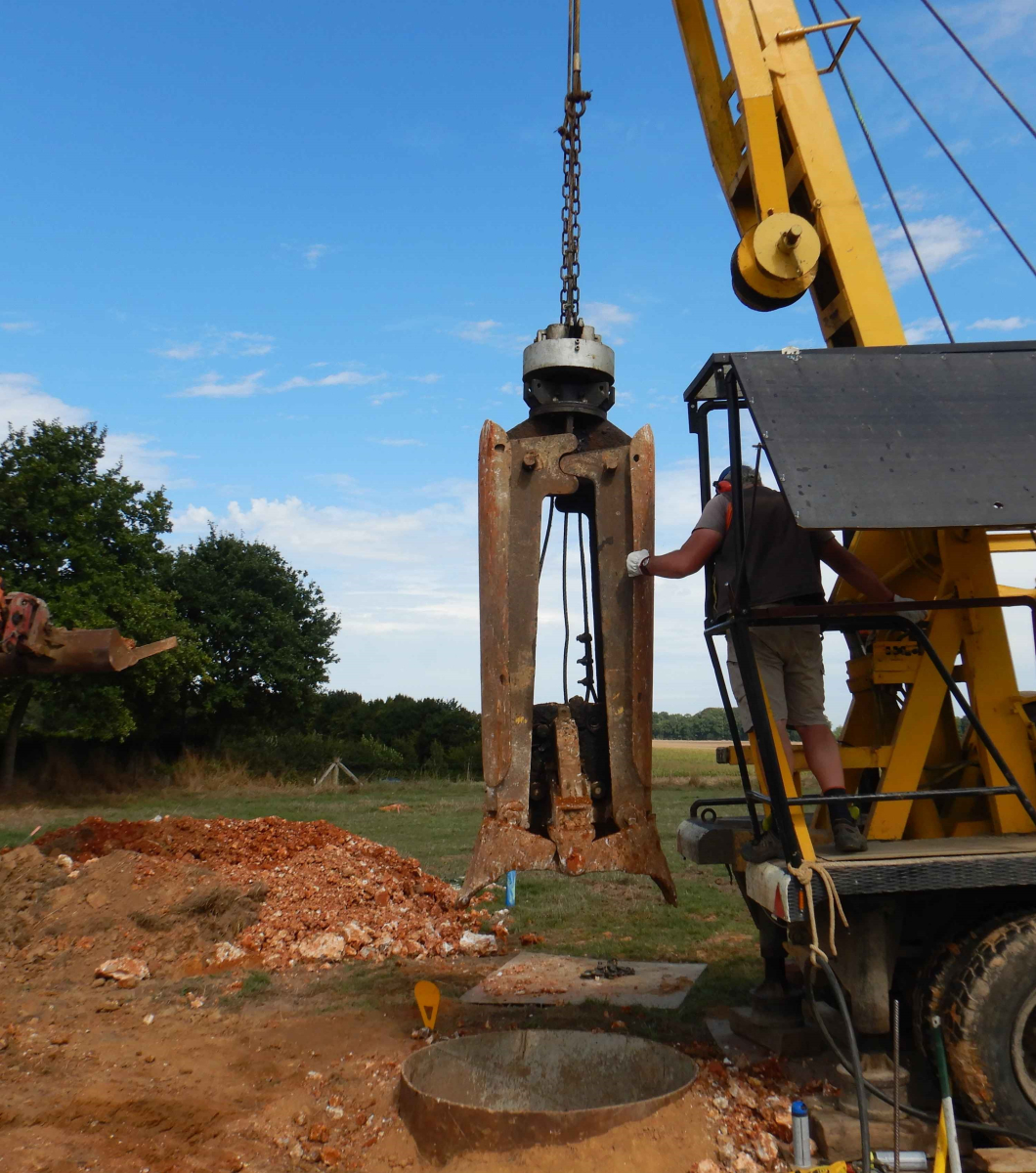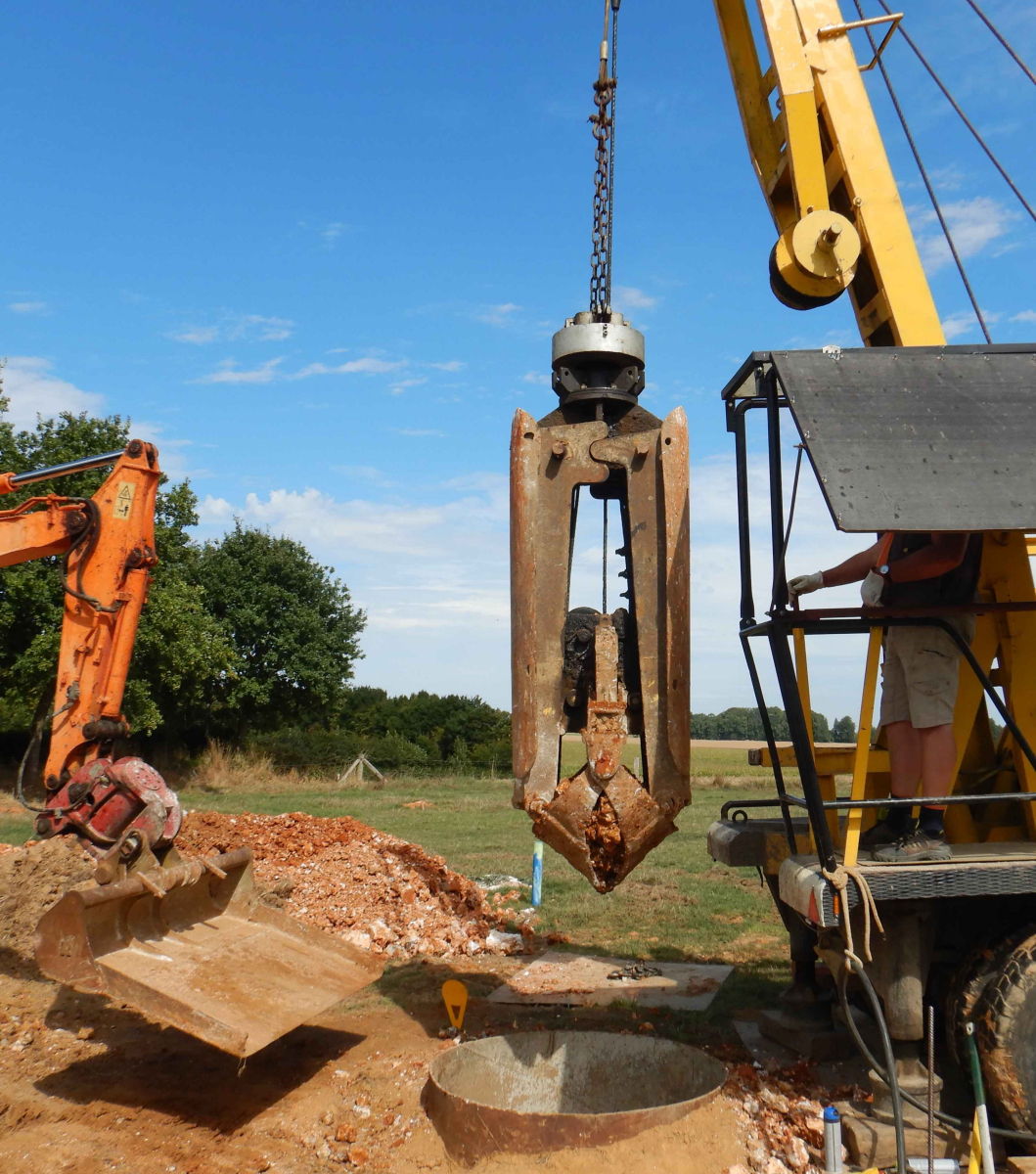 Préalablement au travail du Cerema, un nouveau puits d’accès à cette marnière a été creusé par une société spécialisée, à la pelle bénoto, coût 18 000 € HT.