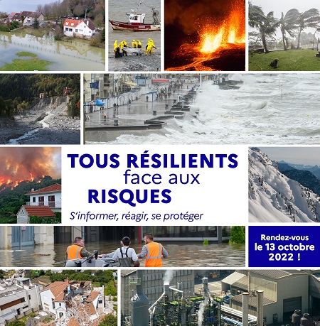 affiche de la journée du 13 octobreCet outil en ligne s’inscrit dans la dynamique du plan d’actions “Tous résilients face aux risques” du gouvernement diffusé en octobre 2021, destiné à  sensibiliser la population et lui permettre de faire face aux catastrophes naturelles et aux accidents industriels.