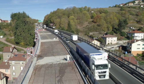 Il supporte 65 000 véhicules par jour et a la particularité d’être implanté en zone urbaine, surplombant en partie un quartier de la ville de la Ricamarie.