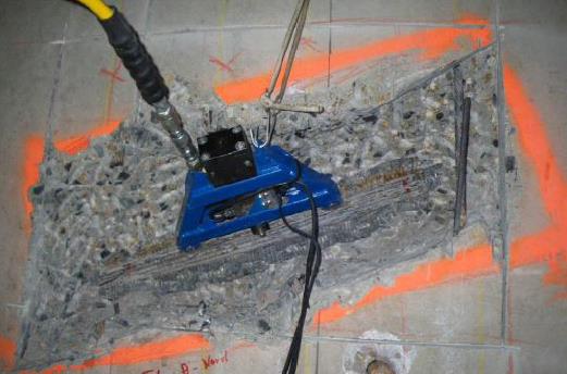 Le principe de réparation des piles était commun à ces trois solutions. Il consistait à hydro-démolir les parements sur 5 cm de profondeur pour supprimer le béton contaminé par les chlorures et le remplacer par un nouveau béton sur 15 cm d’épaisseur et à démolir/reconstruire les chevêtres.
