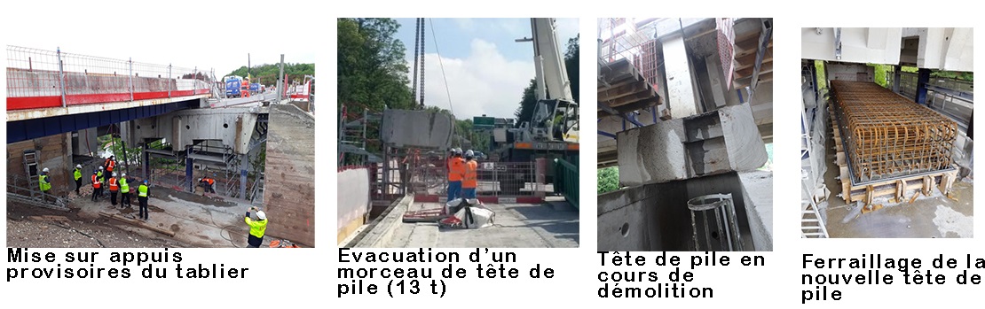 Les travaux sur les tabliers et les têtes d’appuis ont été réalisés en 2017 et 2018, à raison d’un tablier par an.