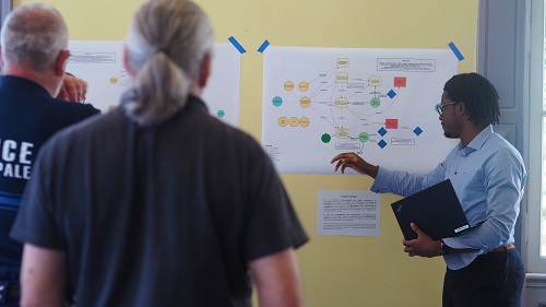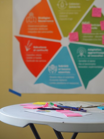 L’échange en atelier a mis en évidence l’intérêt d’aborder l’adaptation au changement climatique de manière concrète par exemple via les risques, en mettant en œuvre des exercices de crise avec des visites sur le terrain, ou encore à travers les sujets qui touchent directement les habitants : l’eau, l’alimentation…