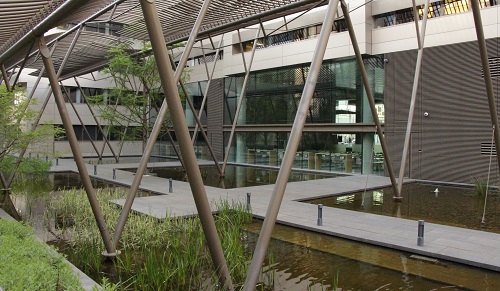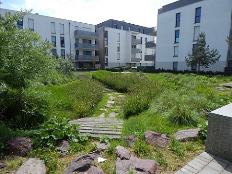 Mare aménagée devant un bâtiment tertiaire à Lyon- Cerema