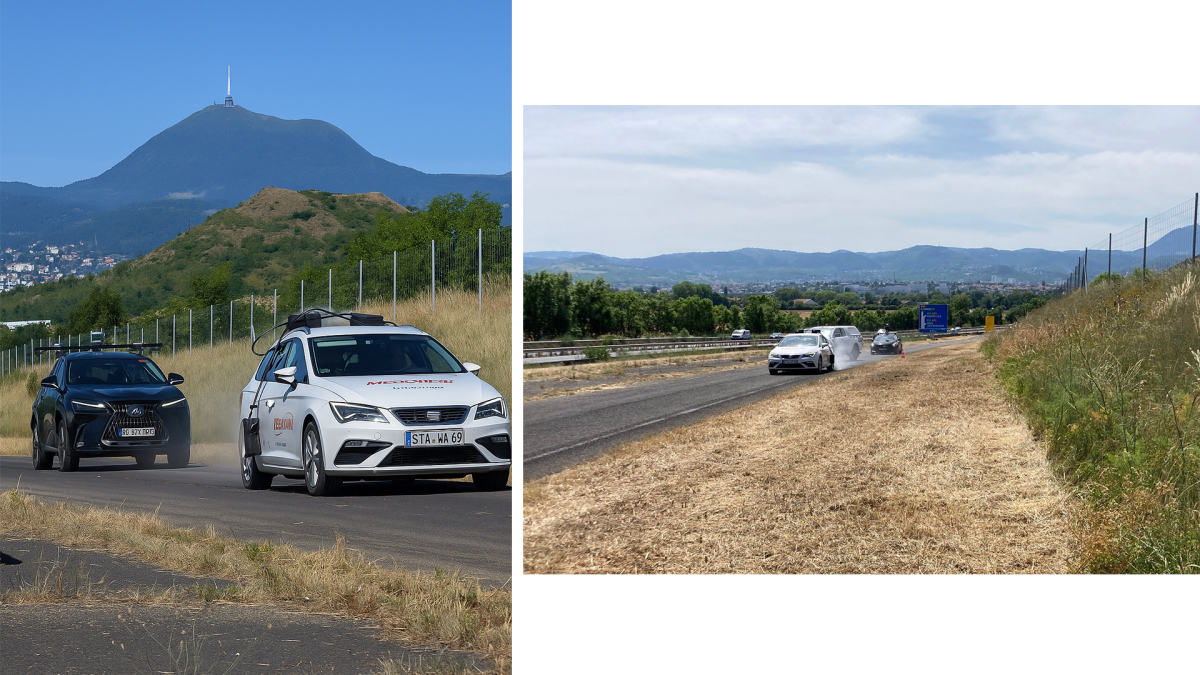 Les essais dynamiques sont toujours complexes à mettre en œuvre, notamment en raison des contraintes de sécurité et de synchronisation entre véhicules. La configuration idéale de cette piste extérieure, avec sa longueur importante et sa largeur de deux voies, a permis de tester et répéter plusieurs scénarios impliquant jusqu’à trois véhicules en mouvement simultanément.