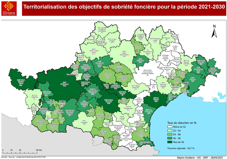 François Lamalle de la DREAL Occitanie a rappelé le cadre législatif issu de la loi Climat et Résilience et présenté plusieurs projets et propositions de loi pour le faire évoluer : aucun de ces projets n'est à ce jour sur le point d'aboutir. Il a ensuite rappelé les principes de déclinaison des objectifs dans les documents de planification à partir du SRADDET Occitanie modifié, approuvé le 11 juillet 2025. Celui-ci donne des objectifs de sobriété foncière différenciés pour chaque territoire de SCOT, qui sont à décliner dans les SCOT avant le 22/02/2027, puis dans les PLU(i) et cartes communales avant le 22/02/2028.