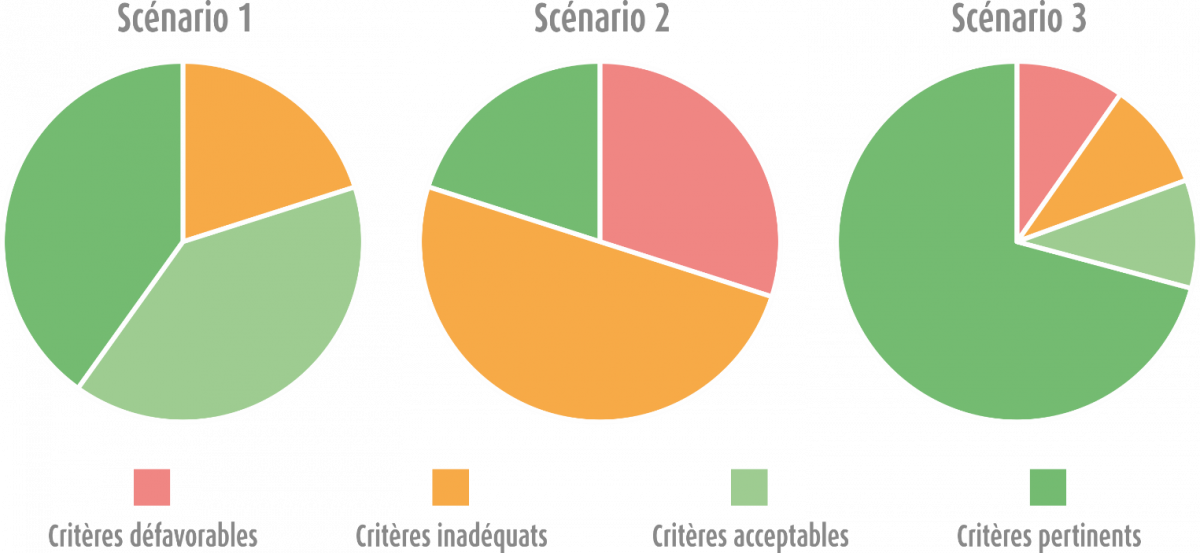 Pour chacun de ces trois scénarios, un bilan économique des coûts et des surfaces, un calendrier des opérations et un inventaire des points forts et des faiblesses ont été élaborés (sur la base du diagnostic). Les scénarios ont ainsi pu être comparés entre eux sur les critères importants pour la commune soit :