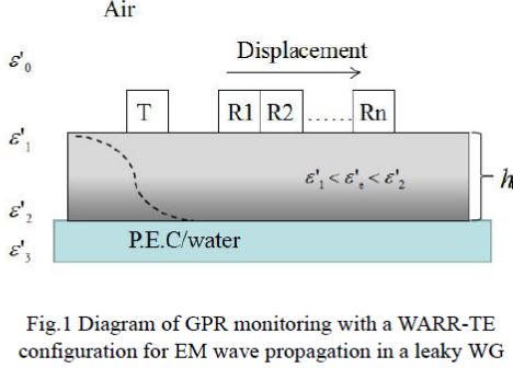 Dans ce travail de recherche, l’équipe caractérise un gradient sous la forme d’un front d’eau généré par une absorption capillaire. Pour caractériser ce gradient, les auteurs se sont appuyés alors sur un modèle de guide d’onde en faisant l’hypothèse que le gradient est discret en plusieurs couches ou continu sous la forme d’une fonction arc-tangente. L’inversion a permis ensuite de caractériser le gradient de la partie réelle de la permittivité dont la typologie est supposée identique à celle du gradient de teneur en eau.