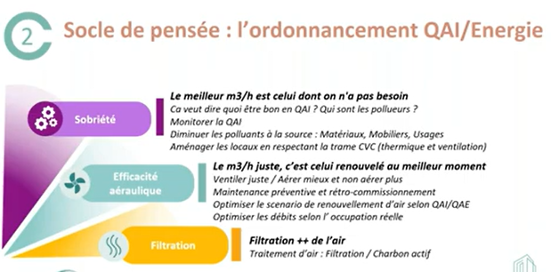 - Exploiter le pilotage : activer le pilotage automatique de la ventilation là où c'est possible et relier les données QAI à GTB pour optimiser les consommations d'énergie et la QAI.