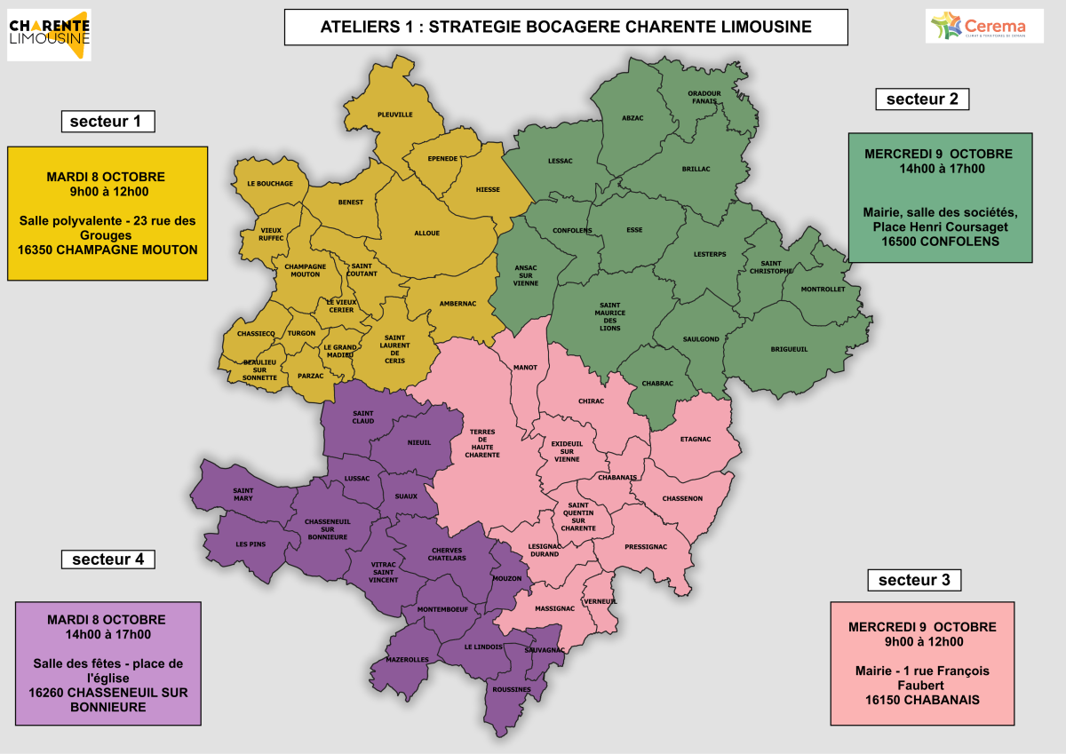 La Communauté de communes Charente Limousine élabore une stratégie de préservation et de restauration du maillage bocager avec l’appui du Cerema, et dans un même temps, conduit des actions opérationnelles de plantation de haies. Retour sur les ateliers qui ont permis d'établir un diagnostic partagé et d'identifier de premières pistes d'action.