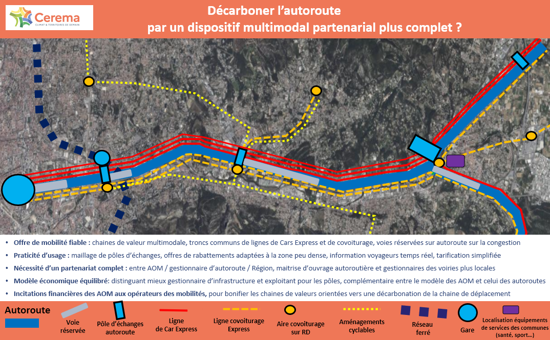 L’ingénierie des différents acteurs de la mobilité (Cerema, gestionnaires d’autoroutes, opérateurs du covoiturage…) est déjà là pour rendre techniquement faisable l’adaptation des infrastructures autoroutières à la multimodalité. Mais dans un contexte de gouvernance multi-acteurs très morcelé, pouvoir proposer un tel système nécessite la construction d'un partenariat équilibré financièrement entre AOM, gestionnaires des réseaux routiers, opérateurs de mobilité développant des offres partagées sous formes de lignes (cars express et lignes de covoiturage). Le financement de ce partenariat pourrait en partie être orienté vers l’atteinte de résultats effectifs sur la diminution de l’autosolisme.