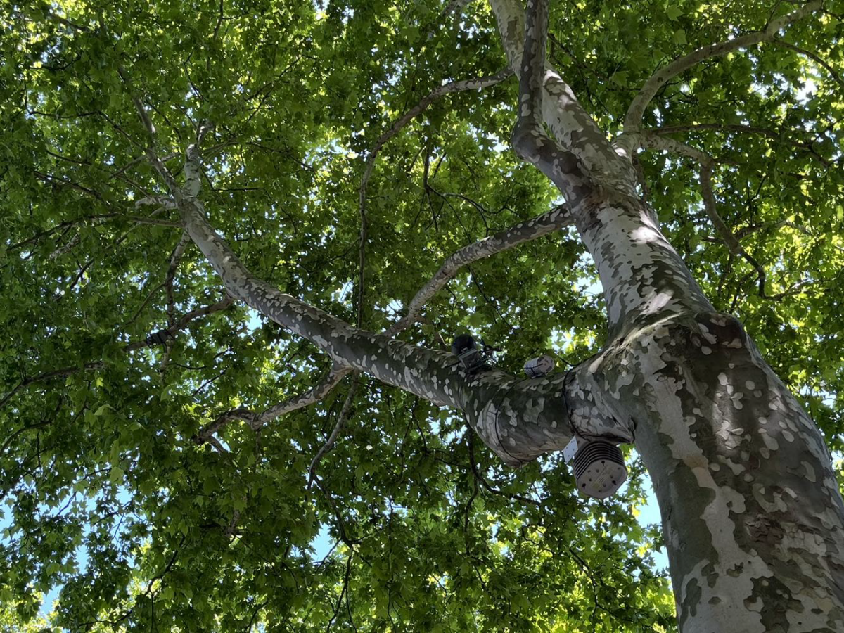 Un suivi basé sur la mise en place d’une instrumentation complète (hygromètre, température “globe noir”, anémomètre, dendromètres, sondes tensiométriques, etc.) a été mis en œuvre dans le cadre du projet européen Biotope (2016-2018). Une évaluation du gain en termes de rafraîchissement et l’effet d’arrosages anticipatifs sur le confort thermique, le stress hydrique et la croissance des arbres a été menée.