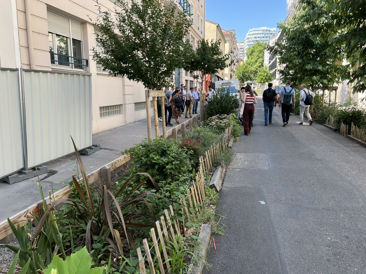 Un an plus tard, ce fut le tour de la Métropole de Lyon d’accueillir le Club des Démonstrateurs, pour une matinée de présentation des travaux menés en 2024-2025, puis la visite de deux aménagements en faveur du rafraîchissement : la rue Garibaldi et l’îlot Danton.
