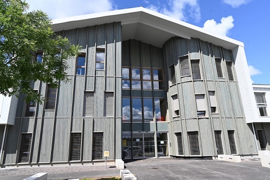Suite au dialogue compétitif mener entre 3 candidats, le groupement "Charpente Houot" a été retenu. Il a proposé en 2019, un bâtiment en bois local, menuiserie bois avec BSO, forte isolation en laine de bois, avec des systèmes performants : Pompe à chaleur sur nappe phréatique, Ventilation double flux et éclairage LED complètement automatisé.