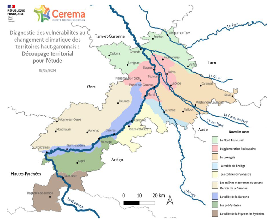 Pour le conseil départemental de Haute-Garonne, le Cerema réalise une étude de diagnostic des vulnérabilités au changement climatique à horizon 2050. La première étape de ce projet a consisté à réaliser un portrait climatique : sur une quinzaine d’indicateurs et avec des analyses différenciées sur les entités paysagères du territoire, il s’agit d’évaluer les évolutions du climat à horizon 2050, en se basant sur les dernières projections de Météo France.