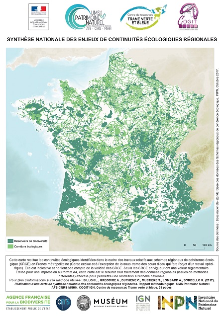 Une cartographie des trames verte et bleue au niveau national est disponible depuis 2018, grâce à une standardisation des données issues des documents de planification.