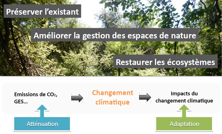 Le changement climatique et l’érosion de la biodiversité sont étroitement liés et s’influencent réciproquement. Mais la nature est aussi un réservoir de solutions. Les écosystèmes en bon état de fonctionnement atténuent le réchauffement climatique, en captant et stockant du CO2 atmosphérique, et peuvent s’adapter à ses effets délétères comme les tempêtes, les inondations, les glissements de terrain ou l’érosion des sols.