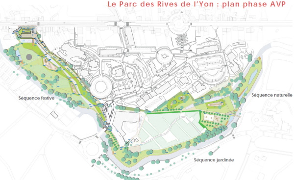 Ces aspects sont également pris en compte dans les aménagements. Ainsi, le projet de création du Parc des Rives de l’Yon initié dans le cadre de l’opération de renouvellement urbain du quartier de la Vigne aux Roses a été présenté. Ce projet intègre pleinement la rivière dans la conception des trois séquences prévues (festive, jardinée, naturelle) :