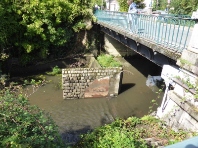 En effet, ce site comprend 3 ouvrages : 1 clapet fonctionnant avec des vérins hydrauliques. 1 bras secondaire avec un seuil béton, 1 déversoir béton avec passe à poissons et passe à canoë. Il est non conforme à la continuité écologique, du fait d’une continuité sédimentaire partielle et de l’absence de continuité piscicole (hors anguille).
