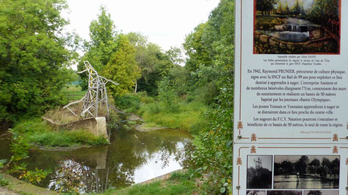 Au cours de l'hiver, la berge du vannage principal a été dégradée et le plan d’eau s’est donc vidé. Pour déterminer le devenir de cet espace important pour les Yonnais, le plan d’eau a été intégré à l’étude sur les continuités en prenant en compte l’ensemble des usages du site (promenade, pêche, etc.) et des bénéfices attendus associés au cours d’eau, au paysage et à la biodiversité. Suite à l’étude des scenarii, il a été choisi de confirmer la disparition du plan d’eau, avec l’enlèvement des derniers ouvrages afin de restaurer la continuité du cours d’eau.