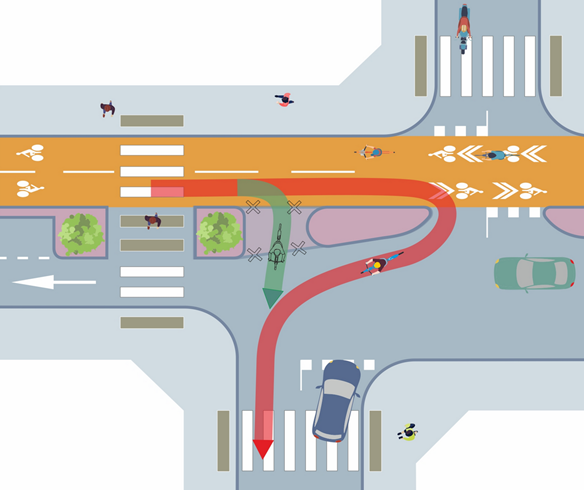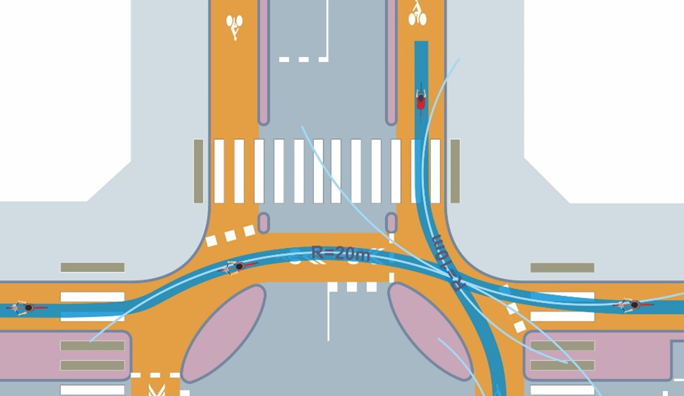 Soigner le confort des cyclistes tout au long de leur trajectoire dans le carrefour
