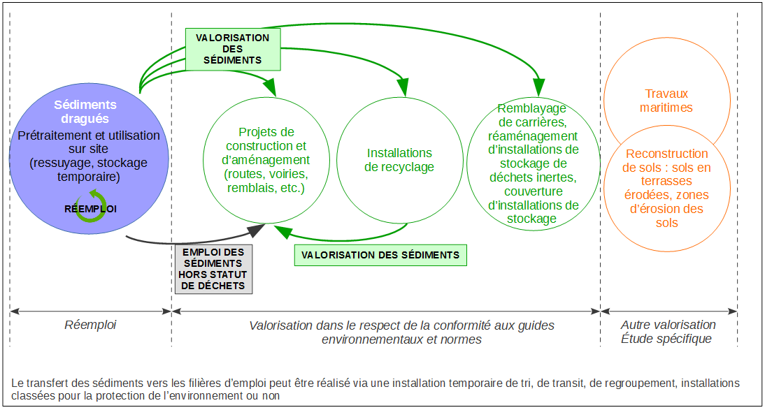 Un des premiers axes de travail consiste à étudier la faisabilité technico-économique des filières de gestion à terre des matériaux extraits avec une priorité au réemploi et à la valorisation.