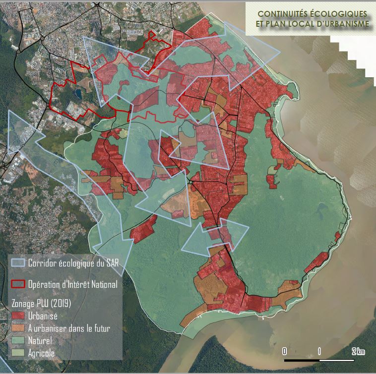 Rémire-Montjoly, commune adjacente de Cayenne en fort développement, fait face à un rythme d’urbanisation soutenu qui a profondément transformé sa physionomie. Son cadre de vie, apprécié, par les habitants est fortement lié à la présence des milieux naturels, mais l’équilibre entre expansion de l’urbanisation et maintien des milieux naturels est fragile.