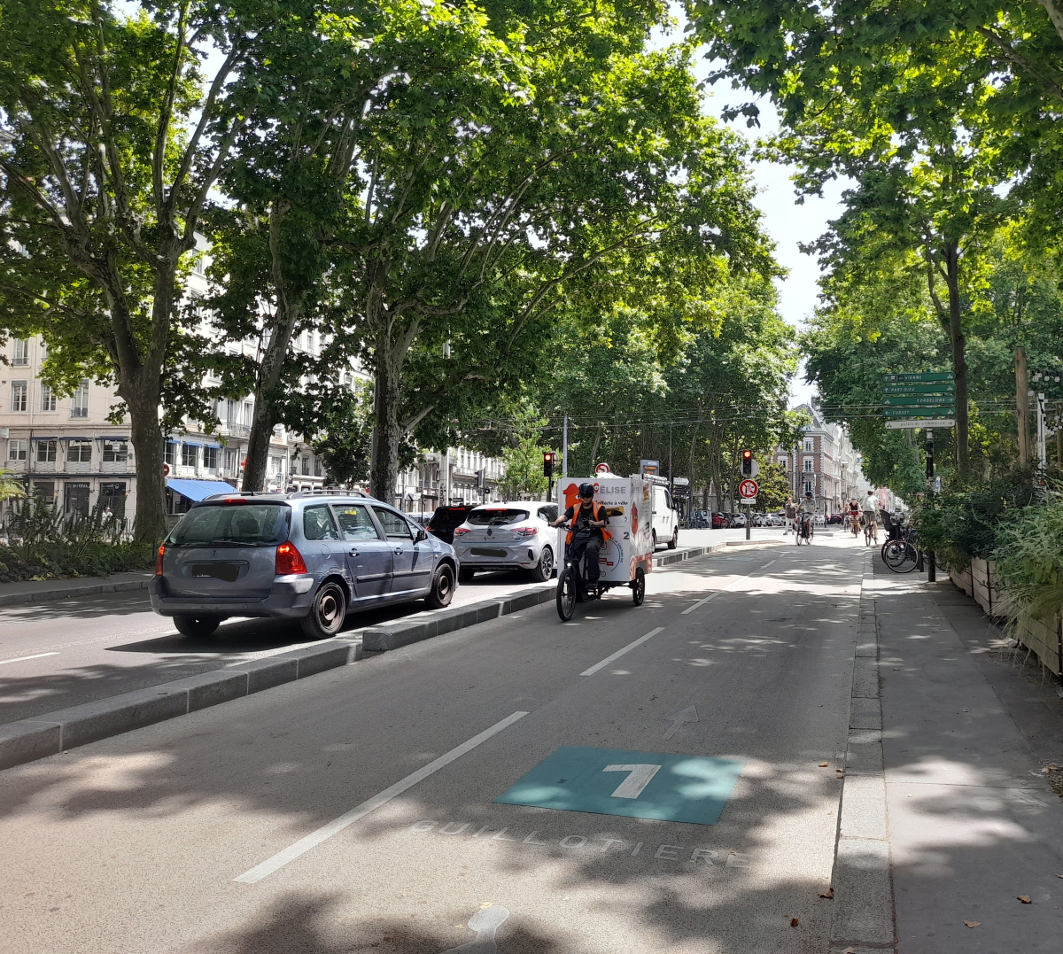 Des pistes bidirectionnelles de 4 mètres de large, séparées du trafic motorisé et des flux piétons :