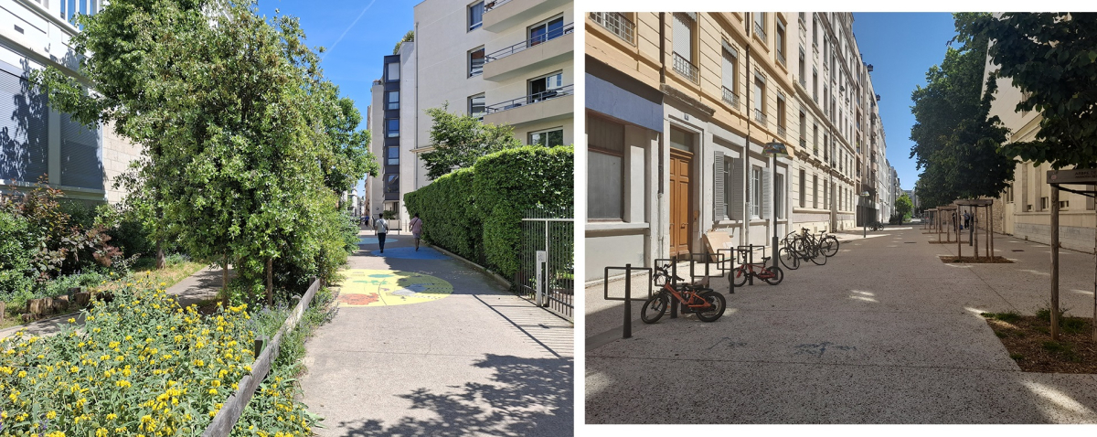 Toutes les rues du secteur sont en double-sens cyclable (Lyon est une Ville 30). Les traversées piétonnes sont progressivement mises en accessibilité et les rues sont végétalisées au fur et à mesure.