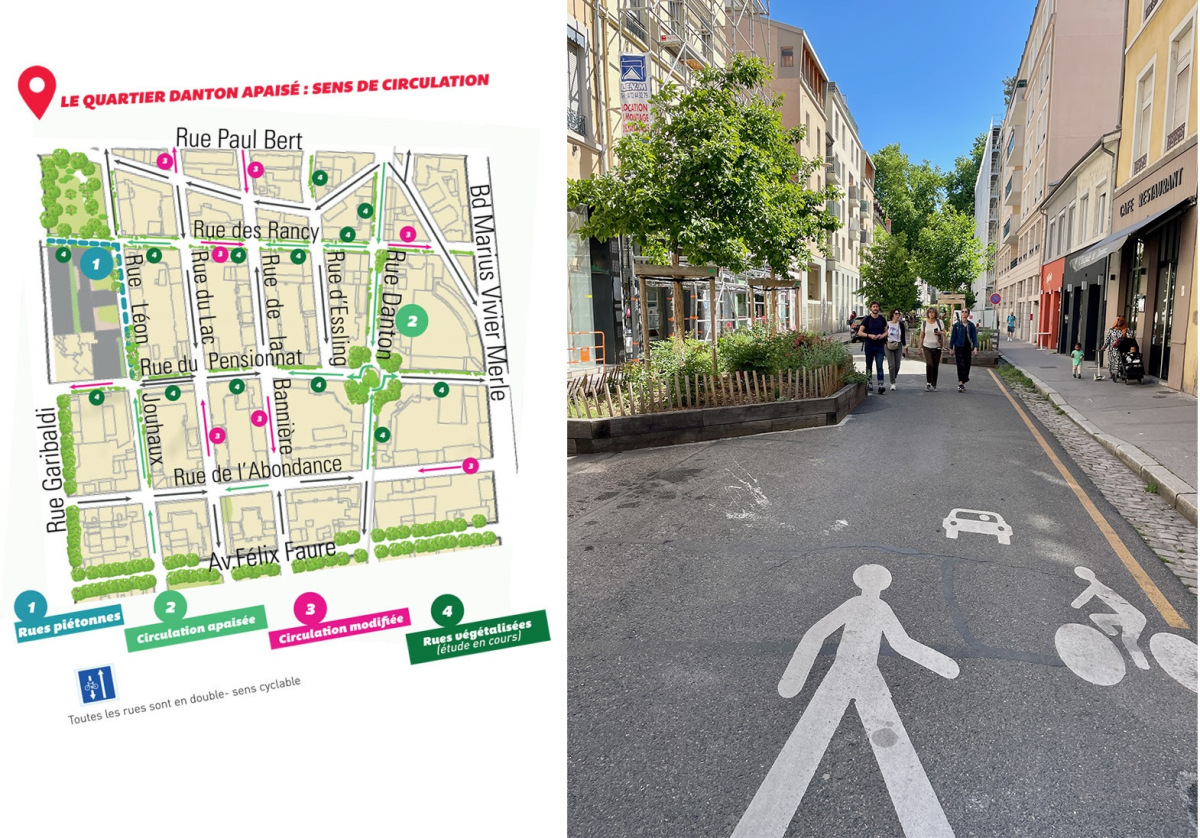 Inspiré du concept des "super-îlots", les sens de circulation dans le quartier Danton ont été revus en 2023, afin de supprimer le trafic de transit. Ce dernier est désormais reporté sur les grands axes alentours. La circulation des véhicules qui se rendent dans le quartier reste possible (habitants, commerçants et clients, accès à l’école, livraisons, etc). Cette organisation favorise la marche ou l’usage d’un vélo pour les déplacements.