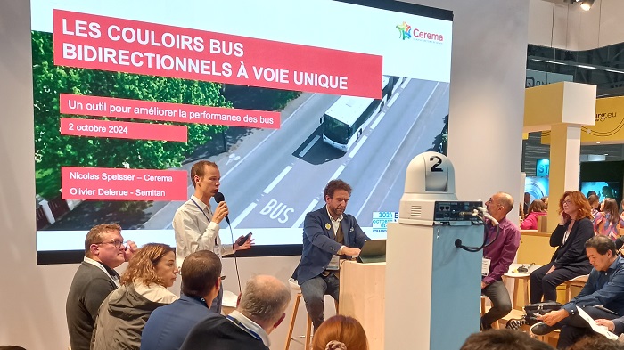 Intervention à deux voix du Cerema avec l’Eurométropole de Strasbourg au salon EUMO de Strasbourg 2024 pour présenter les futurs aménagements multimodaux sur M351 en faveur des cars express.