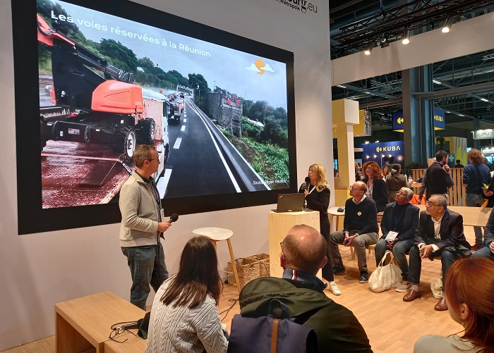 La construction de cet outil se veut collaborative, afin de répondre aux attentes des territoires et des acteurs de la filière. L'intervention au salon EUMO EXPO a notamment permis d'échanger avec des AOM et des constructeurs sur une première version "prototype" de l'outil, des pistes d'amélioration à mettre en œuvre, et des cas d'usage pertinents à développer.