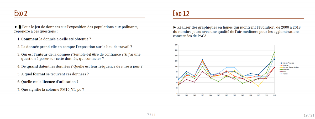 Les sessions de formation se déroulaient en deux temps : la première demi-journée leur présentait des généralités concernant la Data tandis que la seconde était consacrée à des travaux pratiques avec une exploration de données, en l’occurrence celles publiées sur la plateforme OpenData régionale DataSud.