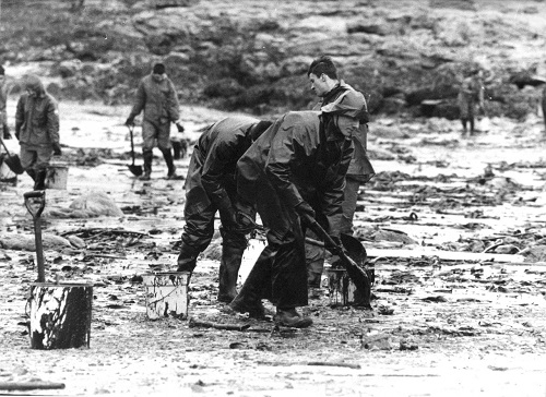 Le 16 mars 1978, le pétrolier Amoco Cadiz s’échouait à 1,5 mille au large de Portsall (Ploudalmézeau, Finistère). La position de l’épave sur les hauts-fonds rocheux et les conditions météorologiques défavorables empêchèrent toute intervention pour interrompre ou limiter l’écoulement du pétrole.