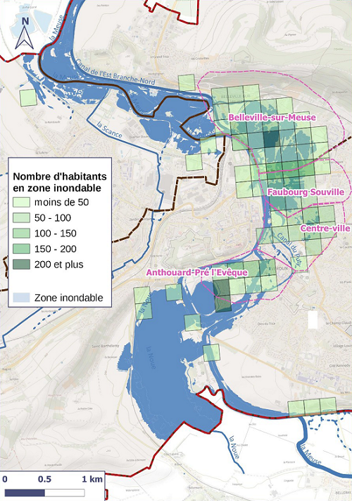En cas de crue majeure, les inondations par débordement de la Meuse et ses affluents peuvent durer plusieurs jours. Outre les remontées de nappes, le ruissellement amplifie aussi le risque inondation dans les espaces très imperméabilisés lors de forts orages.