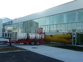 Grâce à un équipement spécialisé, le Banc Grand Volume créé au laboratoire d’Autun dans les années 80, et le ventilateur géant Megafan, le Cerema peut effectuer des tests d’étanchéité à l’air sur des bâtiments de grands volumes.