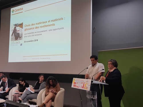 Le Cerema a présenté les leviers permettant de mieux prendre en compte cet enjeu d'adhérence : dans la rédaction des marchés, lors de la livraison des matériaux et lors de la réception des travaux. Certaines collectivités ont expérimenté des plateformes de tests et réalisent des essais avec les usagers en amont.
