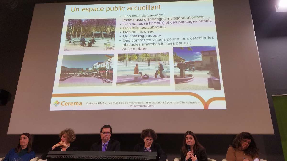Le Cerema a évoqué un autre défi majeur pour demain : encourager la mobilité des séniors et leur offrir la meilleure autonomie possible. Quelles sont les difficultés rencontrées par les seniors dans leur déplacements à pied ? Comment éviter le risque de chute, qui est le principal frein évoqué ? Le Cerema a présenté les pistes qui, en matière d'aménagement, permettent d'apporter un certain nombre de réponses : sécuriser les traversées piétonnes, installer régulièrement du mobilier d'assise, prendre en compte les aléas climatiques, conserver des contrastes visuels et adapter l'éclairage, assurer un confort des revêtements, travailler sur le guidage et sur la lisibilité pour faciliter l'orientation, etc.