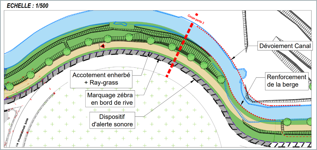• un ajustement du revêtement pour limiter l’imperméabilisation et le maintien des circulations hydrauliques ;