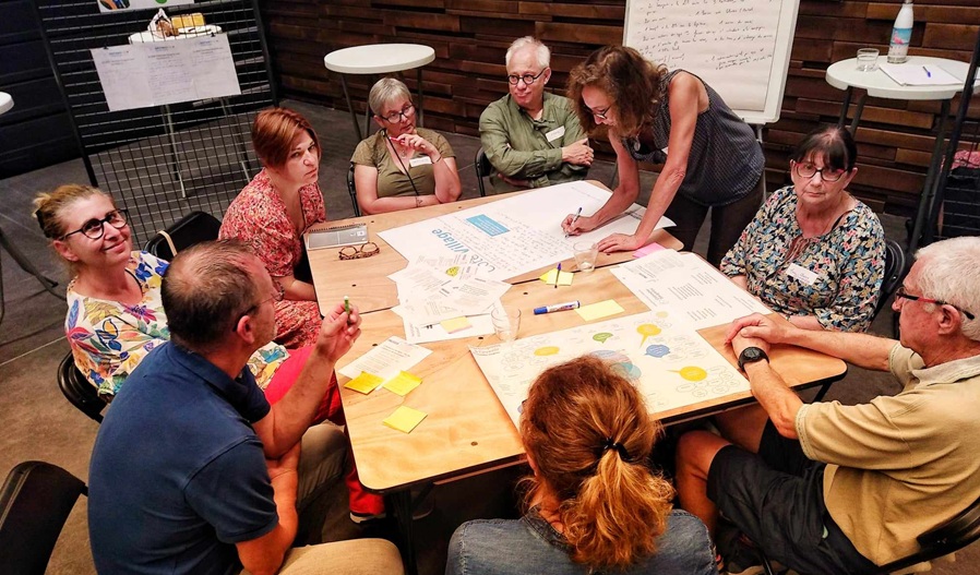 Définition des attentes de la démarche participative avec les élus, travail sur les postures, accompagnement des élus à aller à la rencontre de la population dans l’espace public afin d’écouter et mobiliser la population du territoire, travail avec les agents de la commune et ateliers participatifs sont autant de temps de travail qui ont rythmé cet accompagnement.