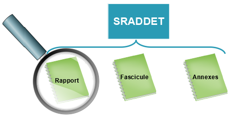 Le rapport du SRADDET est distinct du rapport qui retranscrit la démarche d’évaluation environnementale de ce schéma (aussi appelé « rapport environnemental »). Le rapport environnemental figure au sein des « annexes » du SRADDET.