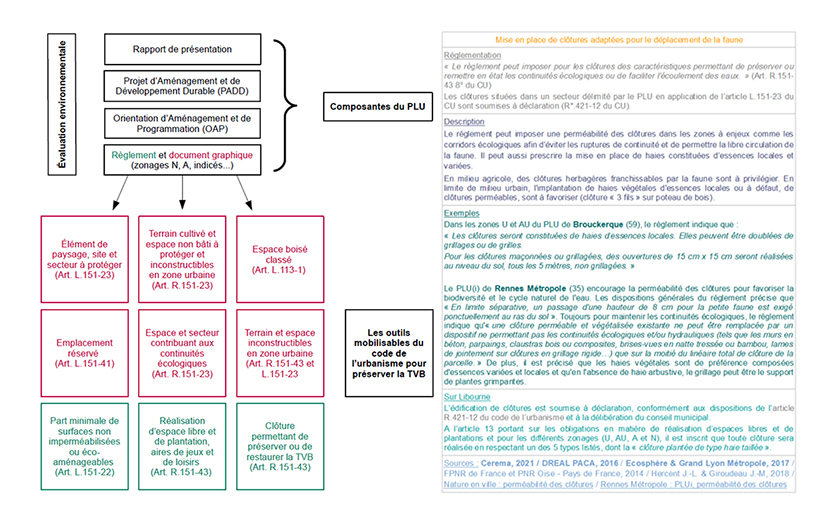 - Mobiliser le PLU (plan local d’urbanisme) : évaluation environnementale, rapport de présentation, PADD (plan d’aménagement et de développement durable), règlement écrit et graphique, OAP (orientation d’aménagement et de programmation), cahier de prescriptions...