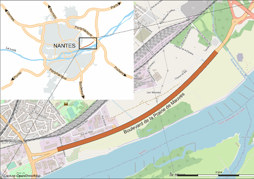 Le Boulevard de la Prairie de Mauves subit des congestions récurrentes essentiellement en période de pointe du soir et dans le sens sortant de Nantes. Ces congestions sont liées au point dur en aval constitué par le raccordement au Pont de Bellevue, principal franchissement de la Loire à l’Est de Nantes sur le périphérique intérieur de Nantes.