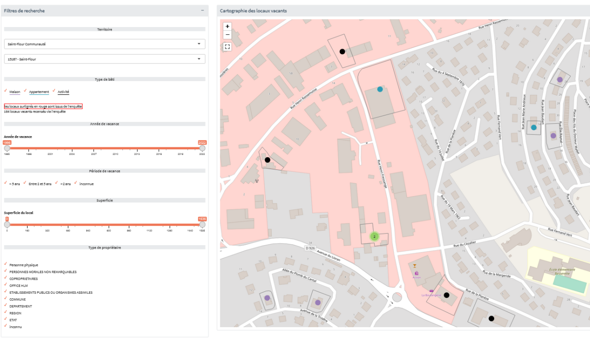 - La création d’une base de donnée locale et localisée recensant les locaux vacants ;
