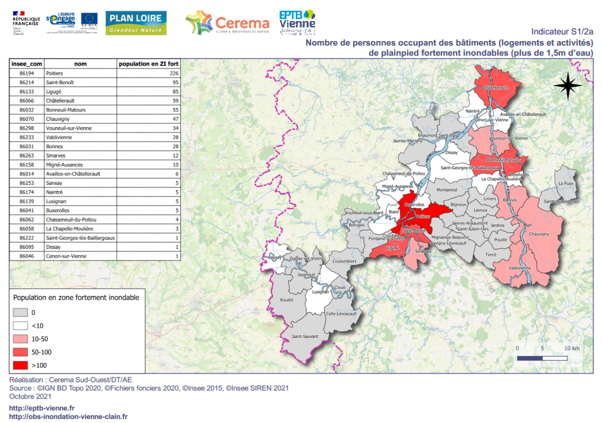 Fort de son expérience précédemment menée sur le territoire de Grand Poitiers, le Cerema a étendu cette première étude en calculant les indicateurs de vulnérabilité sur les communes du PAPI Vienne aval et a travaillé à la création d’un outil SIG accessible aux partenaires.