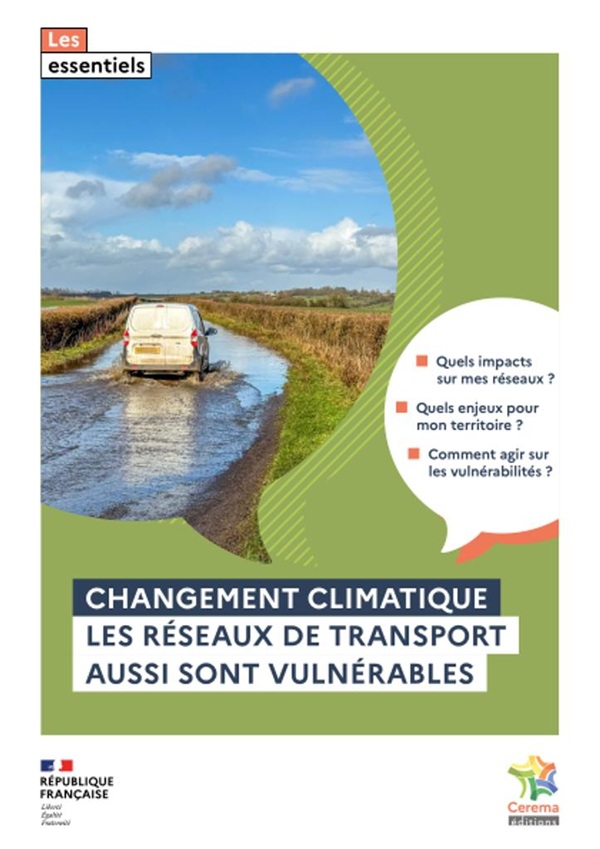 Le Cerema a déjà publié une méthode pour analyser les vulnérabilités des réseaux de transports, et un rapport sur l’adaptation des documents techniques de conception et de gestion des réseaux de transports au changement climatique.