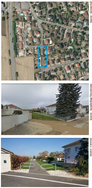 Une bande de terrain a ici été acquise et aménagée pour créer une ouverture et assurer la continuité. Le cheminement nord-sud relie ainsi plusieurs quartiers au centre du village de manière sécurisée et apaisée, au plus court et en évitant les voiries principales.