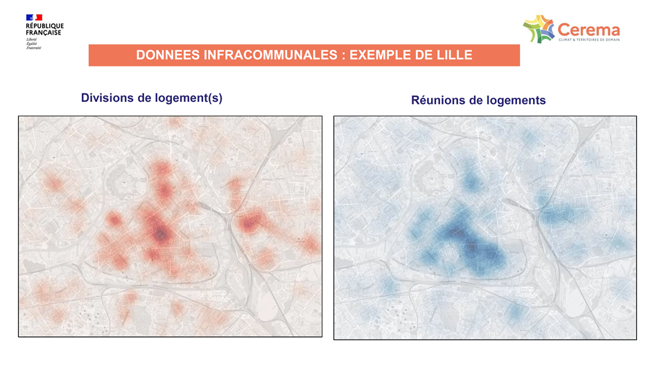 Gilles Verley, chargé d’études habitat et foncier au Cerema, est revenu sur l’origine des travaux qu’il mène sur la mesure et la caractérisation des restructurations qui affectent le parc de logements, et qui ont débuté à l’occasion d’un partenariat avec la Métropole Européenne de Lille (MEL).